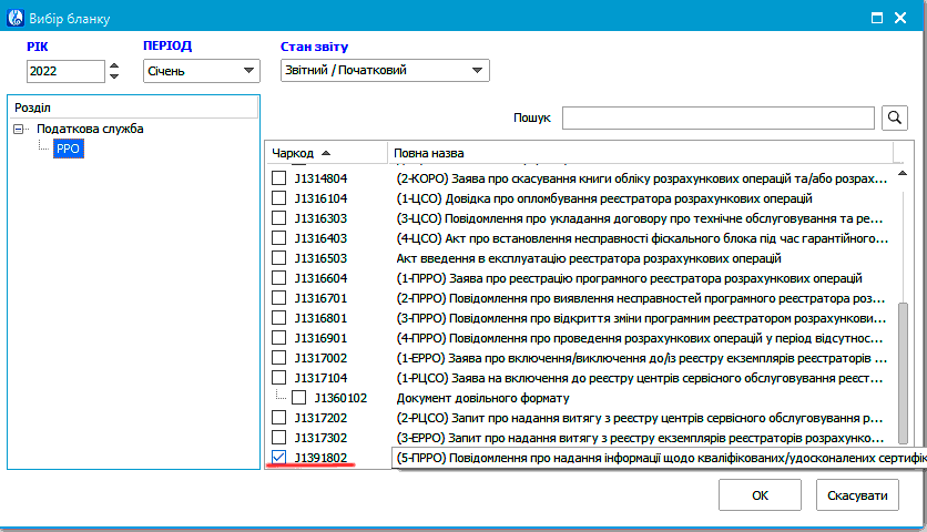 Для створення форми 5-ПРРО в програмі “Соната” потрібно відкрити розділ РРО на Домашній сторінці та знайти форму J/F1391802.