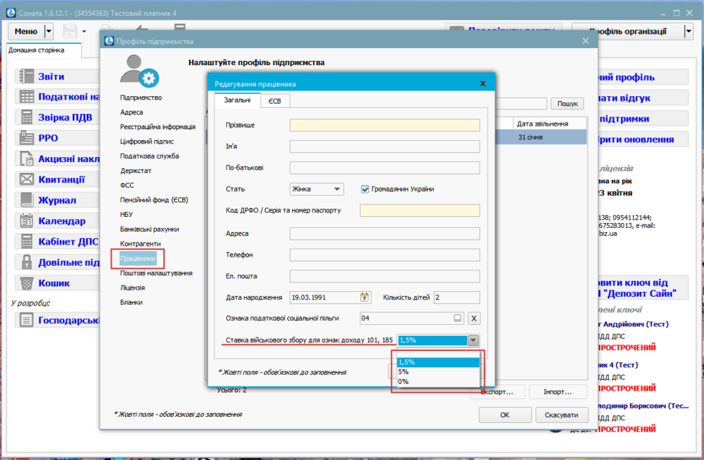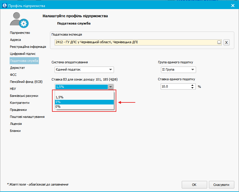 В деяких профілях ставка військового збору могла автоматично виставитися в 1,5%.