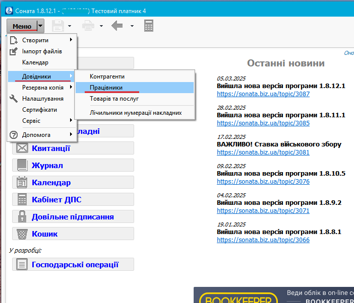 Для внесення змін в картку працівника потрібно зайти в Меню, “Довідники” і вибрати пункт “Працівники